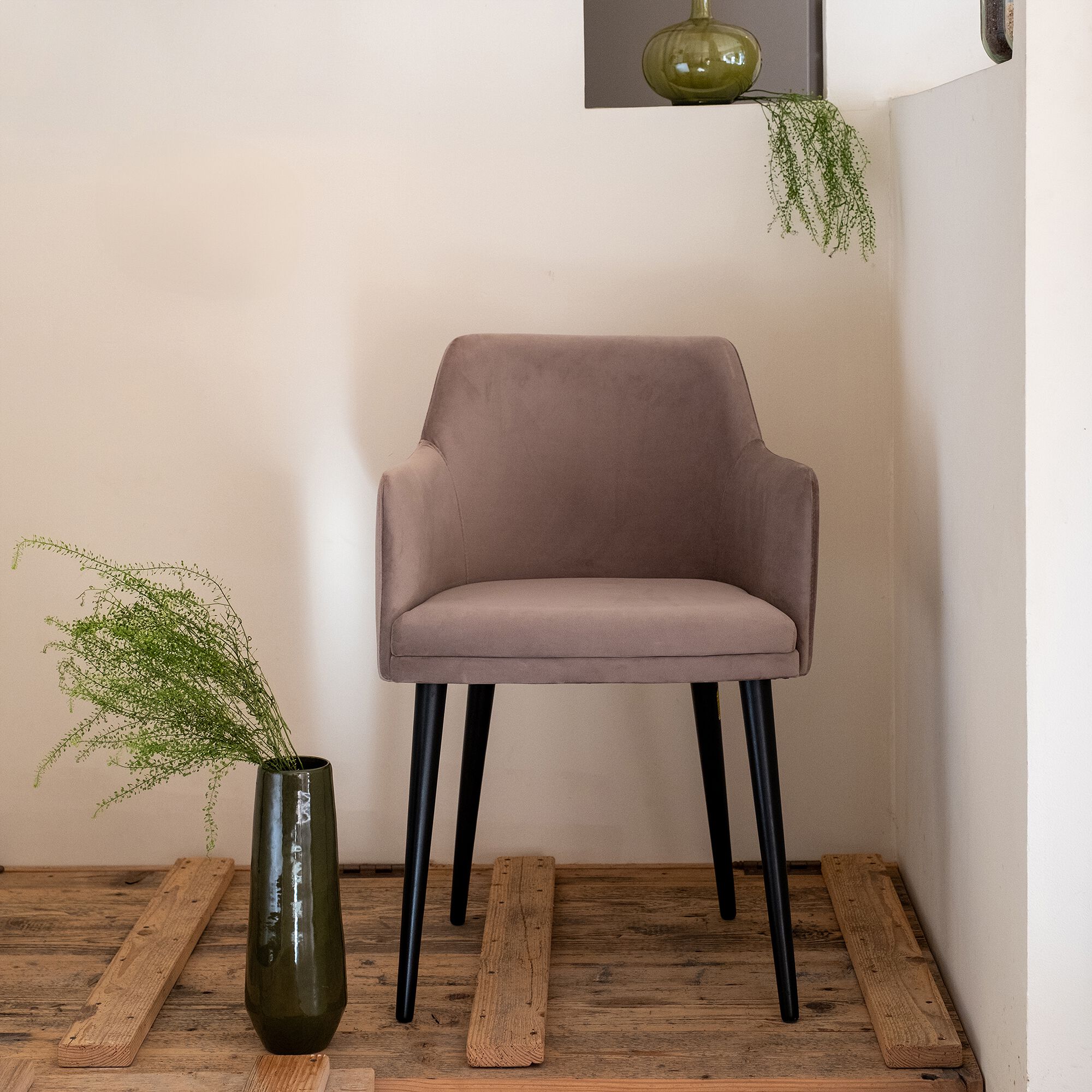 MANE - Chaise en tissu effet velours avec accoudoirs - gris