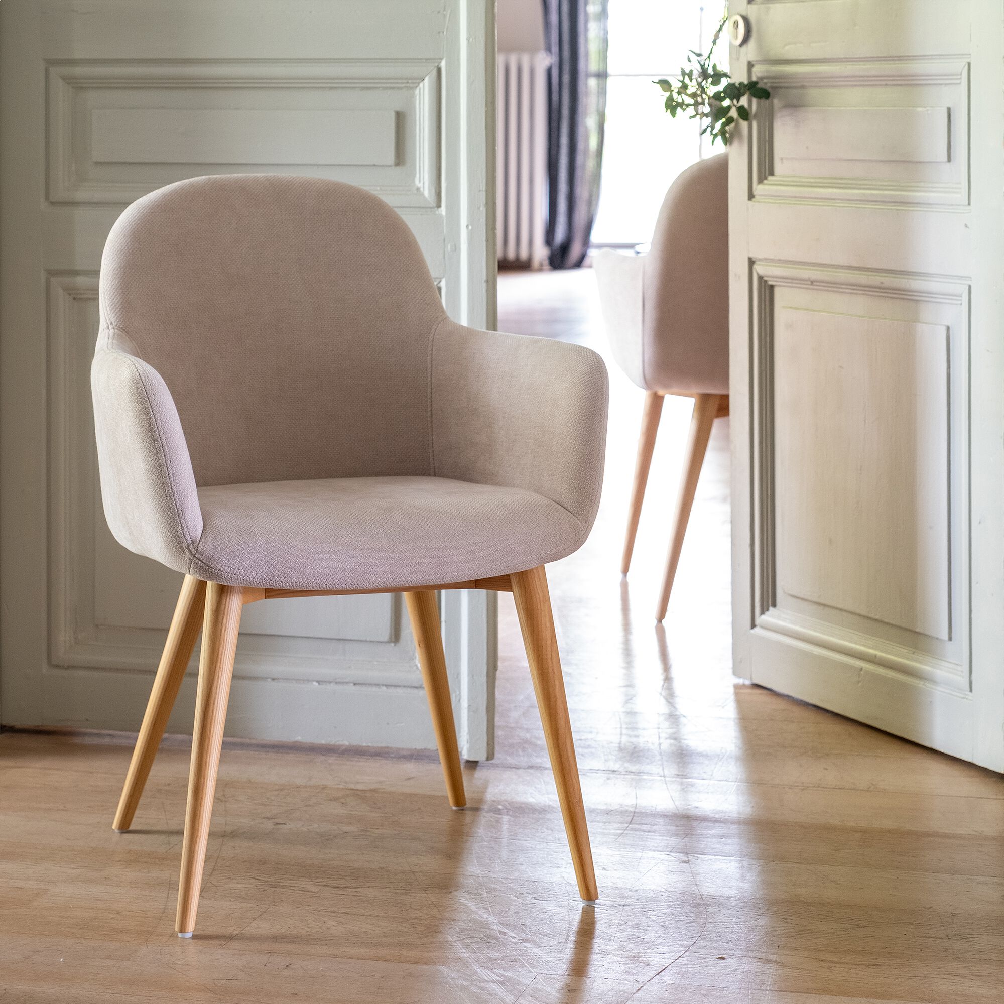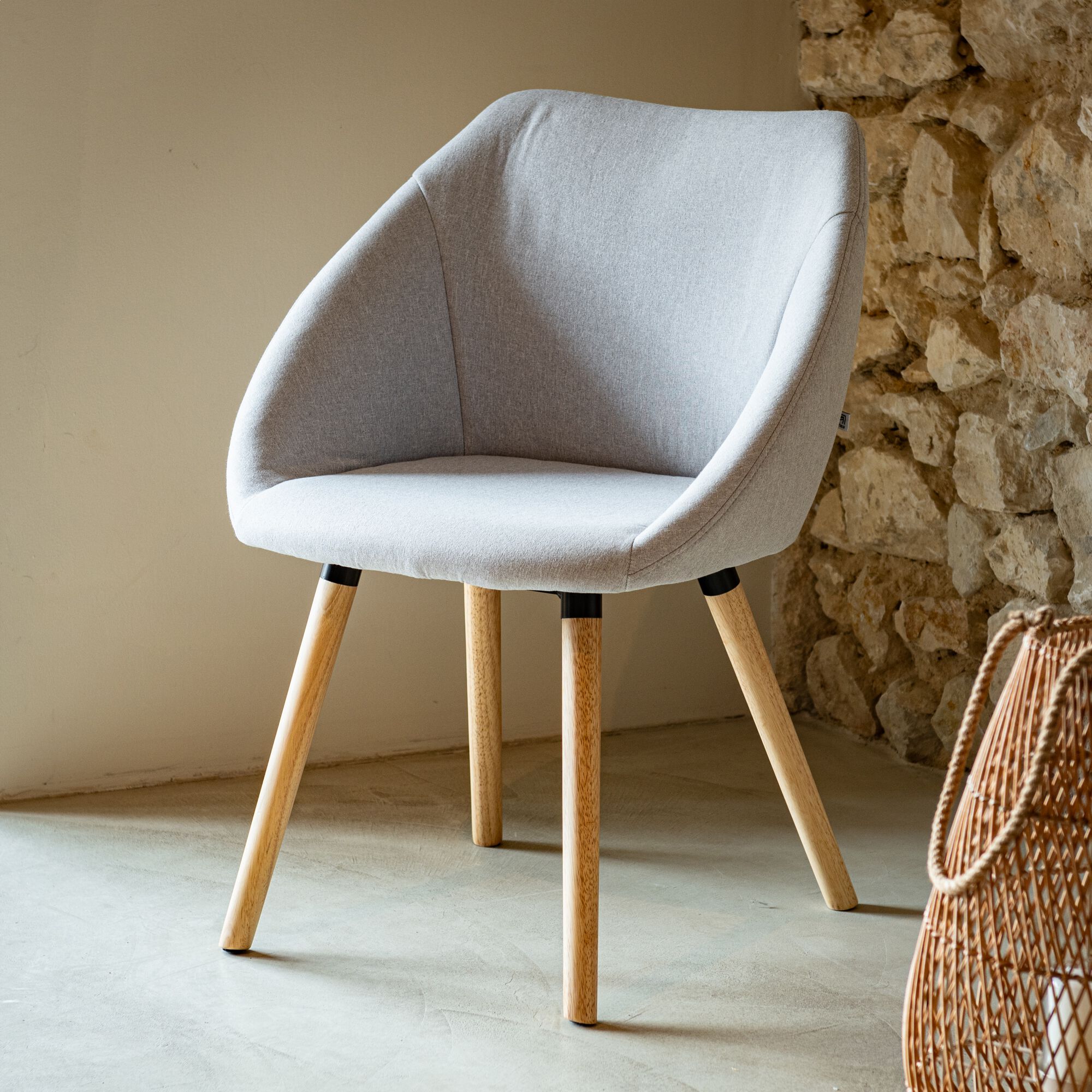LANA - Chaise en tissu avec piètement en hêtre - gris