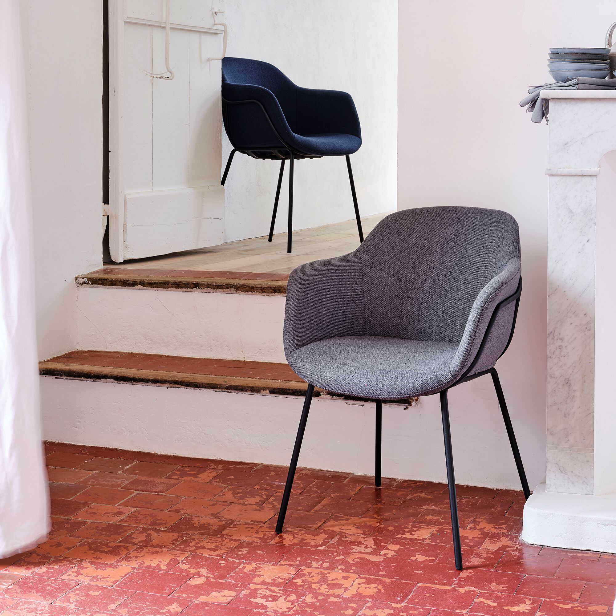 CHLOE - Chaise en tissu avec accoudoirs - gris ardoise