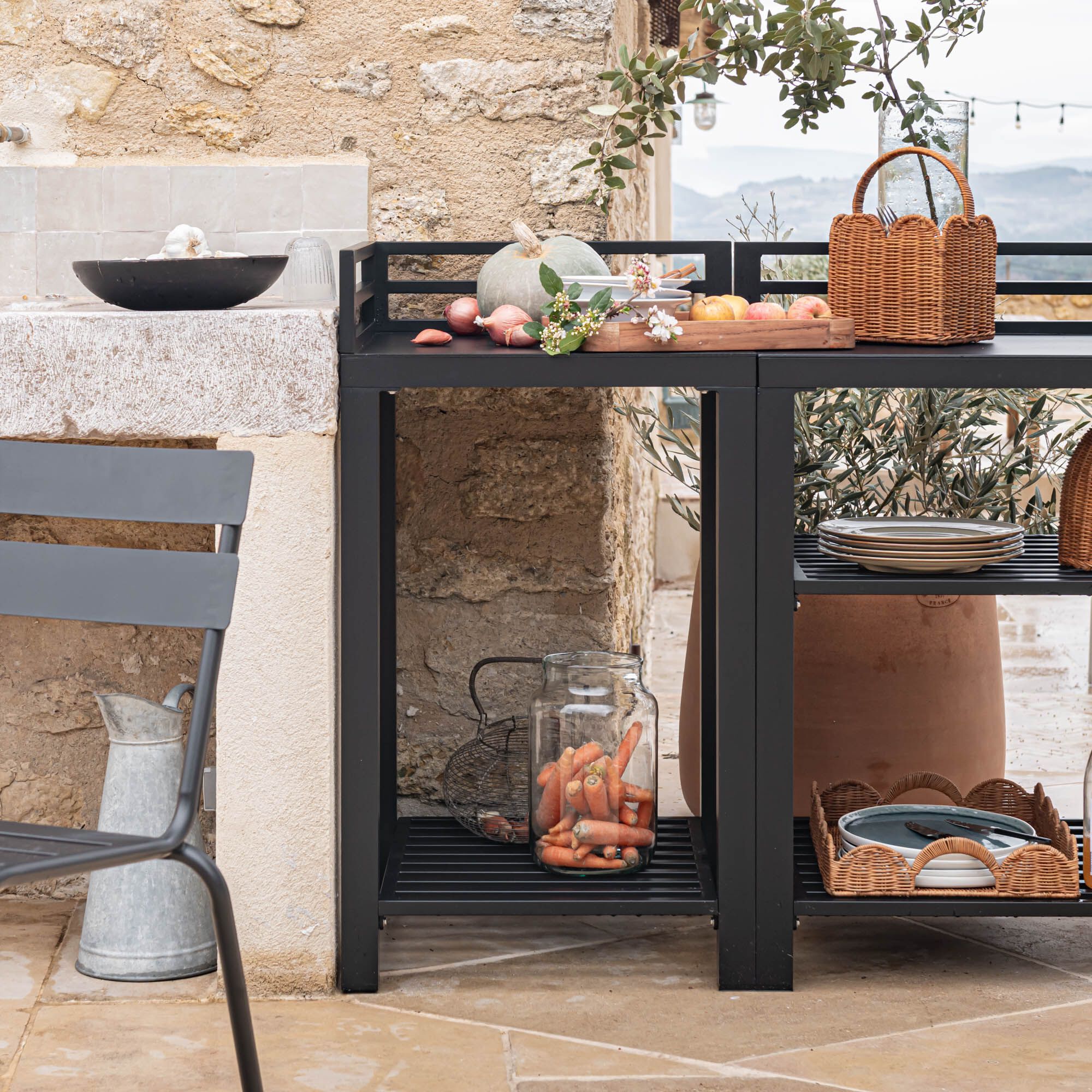 ZANNOUCH - Meuble d'angle de cuisine extérieure en métal - noir