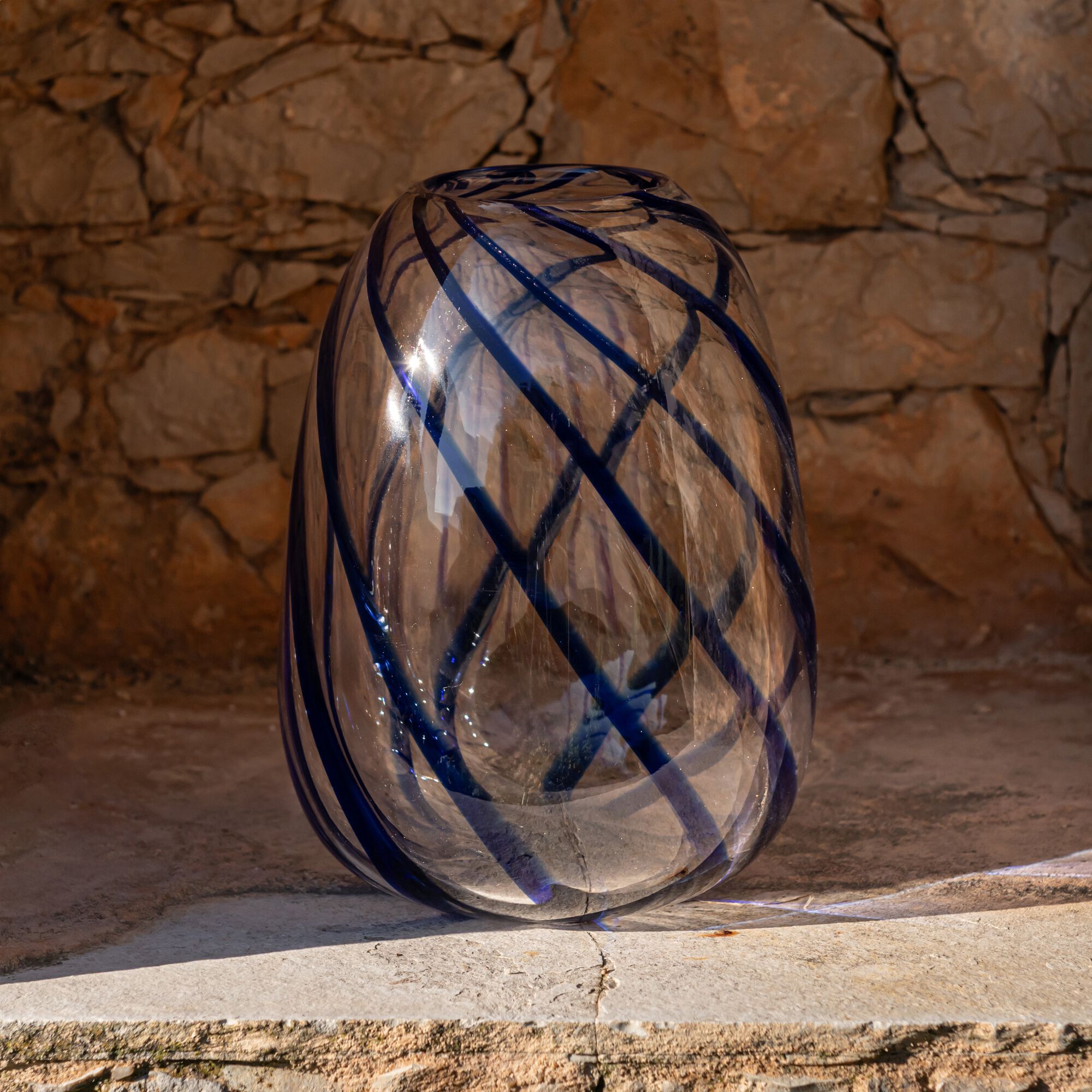 KORLIO - Vase classique en verre à rayures H20cm - bleu