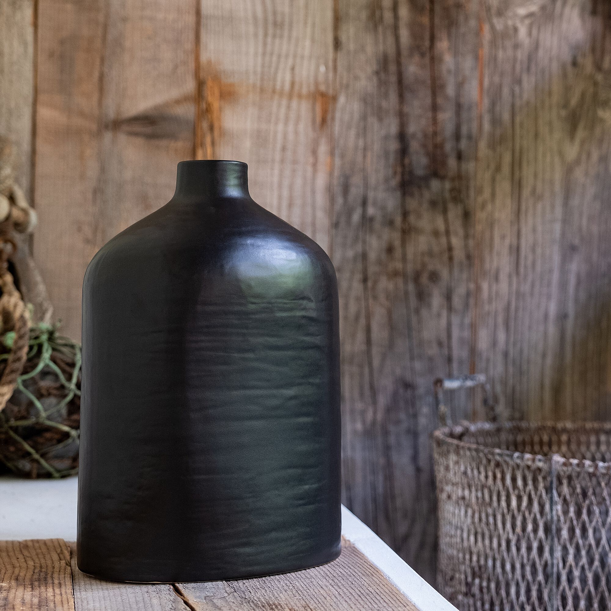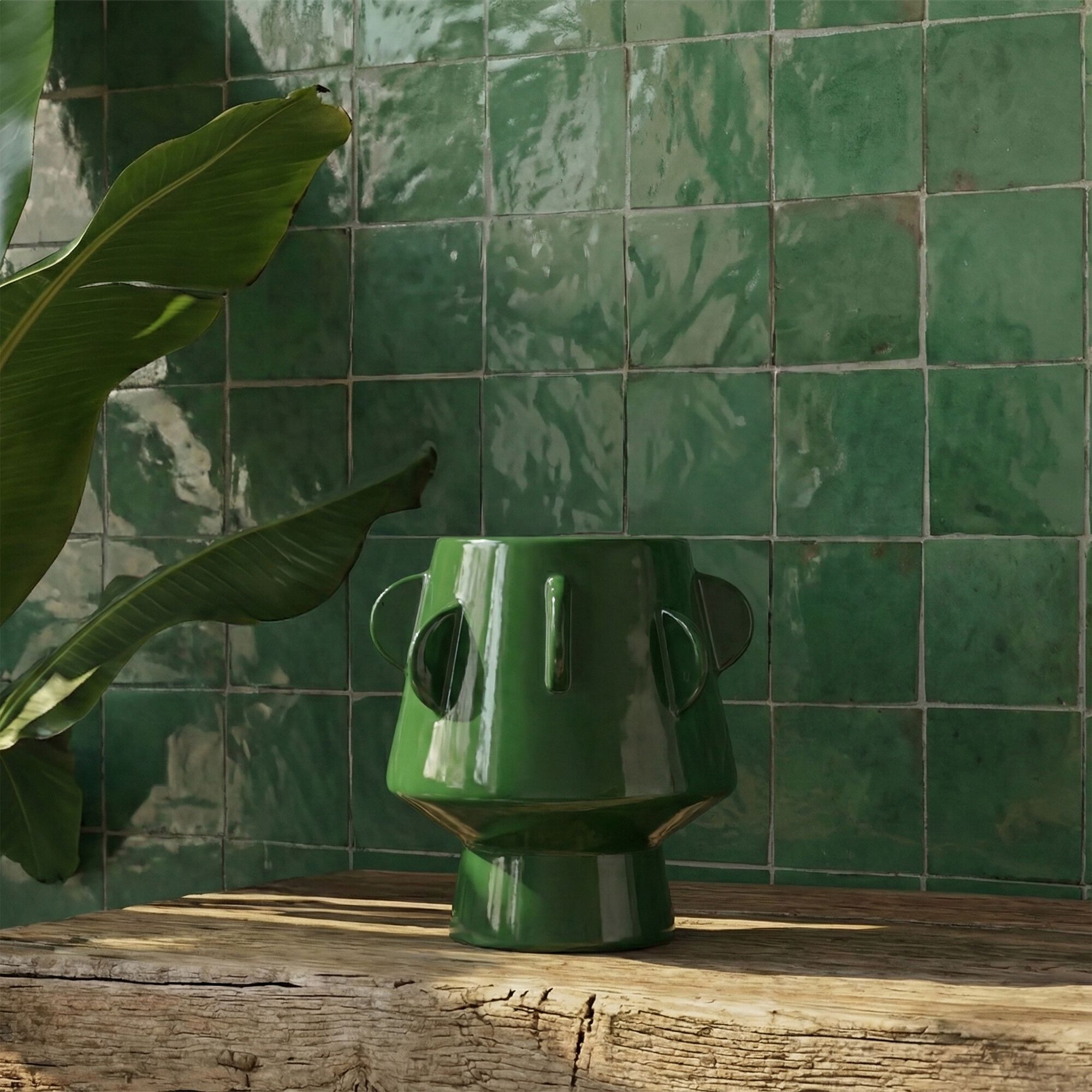 POTOSI - Vase contemporain en faïence H20cm - vert
