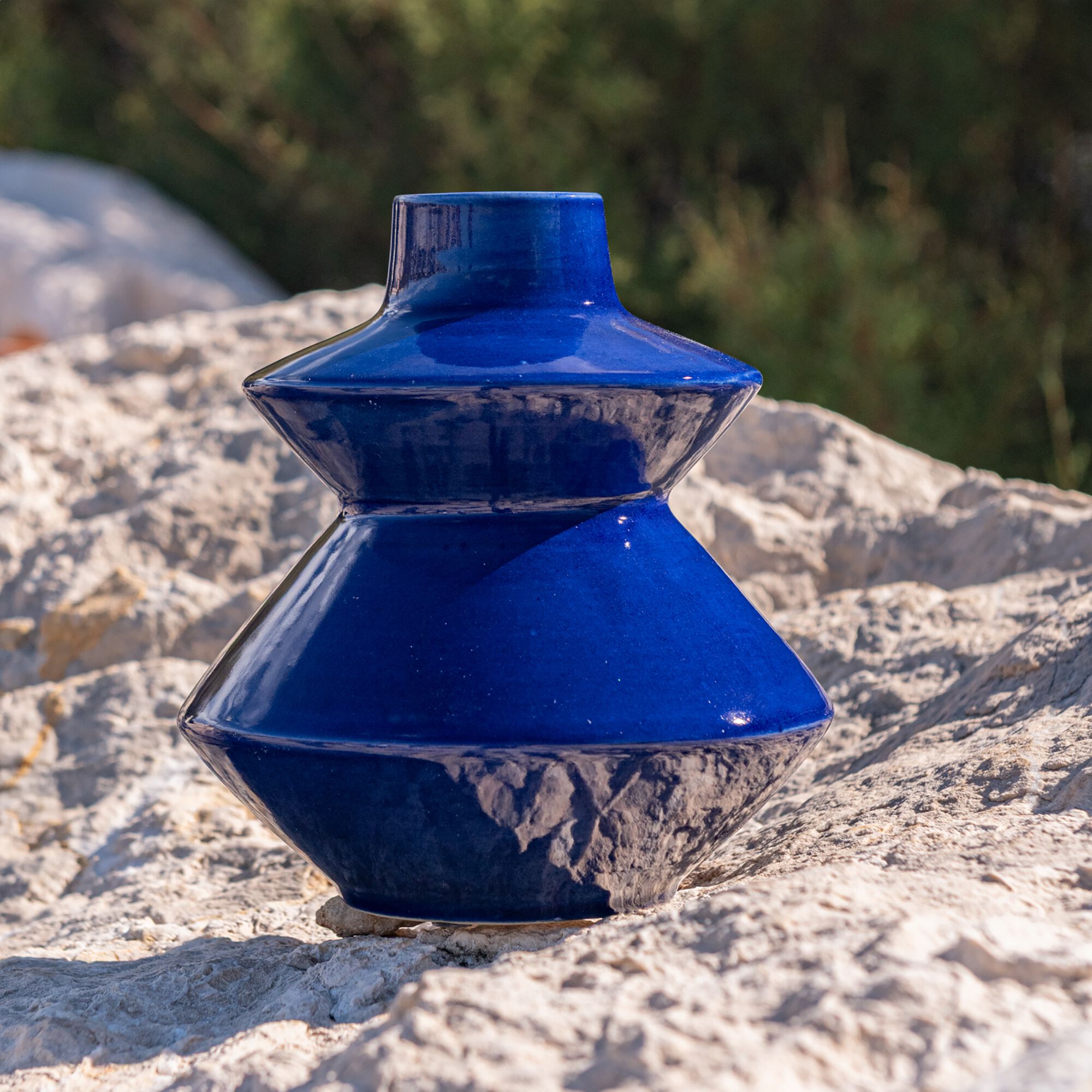 MILON - Vase contemporain en faïence H19cm - bleu