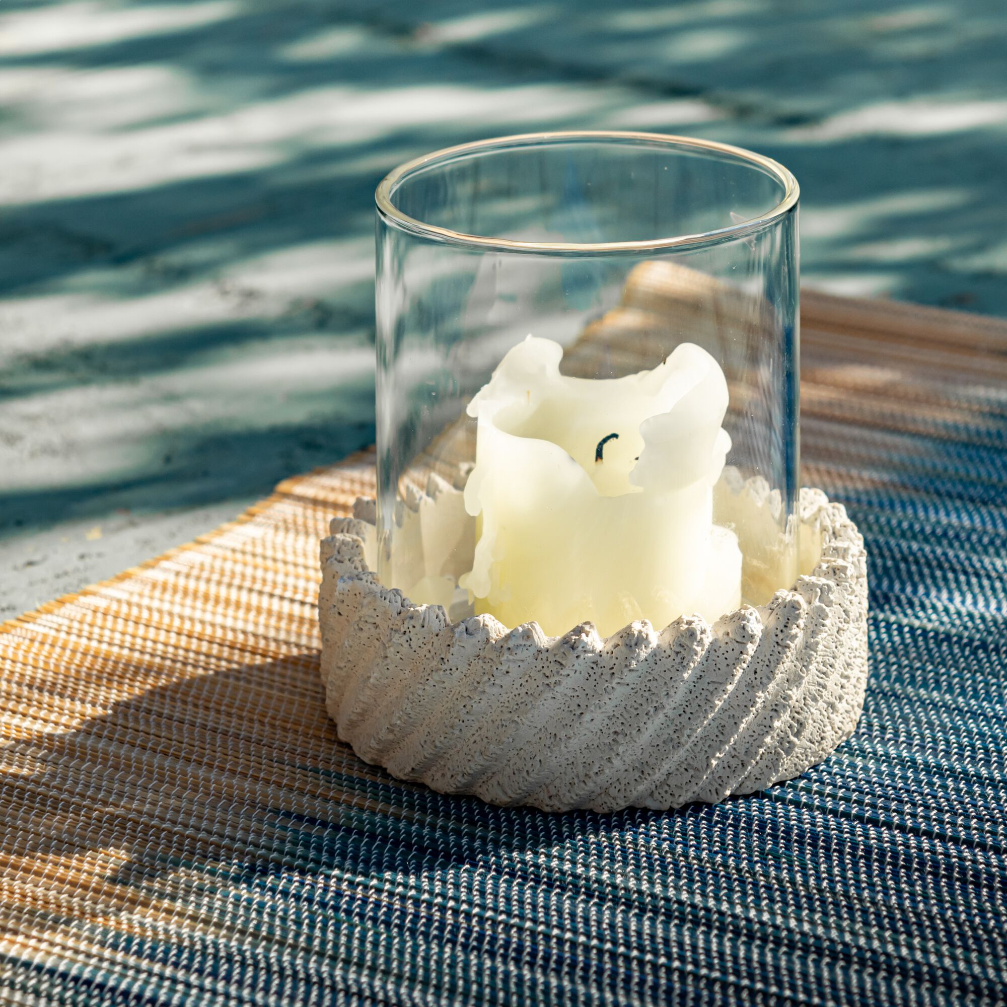 TAYMA - Photophore en verre et jonc de mer D11cm - naturel