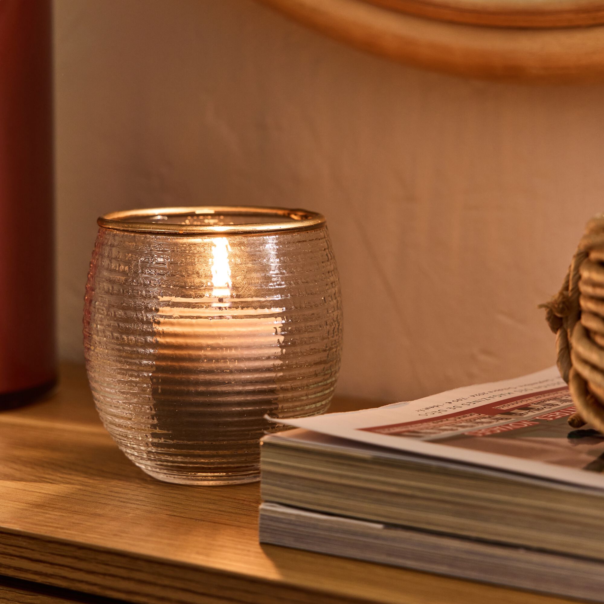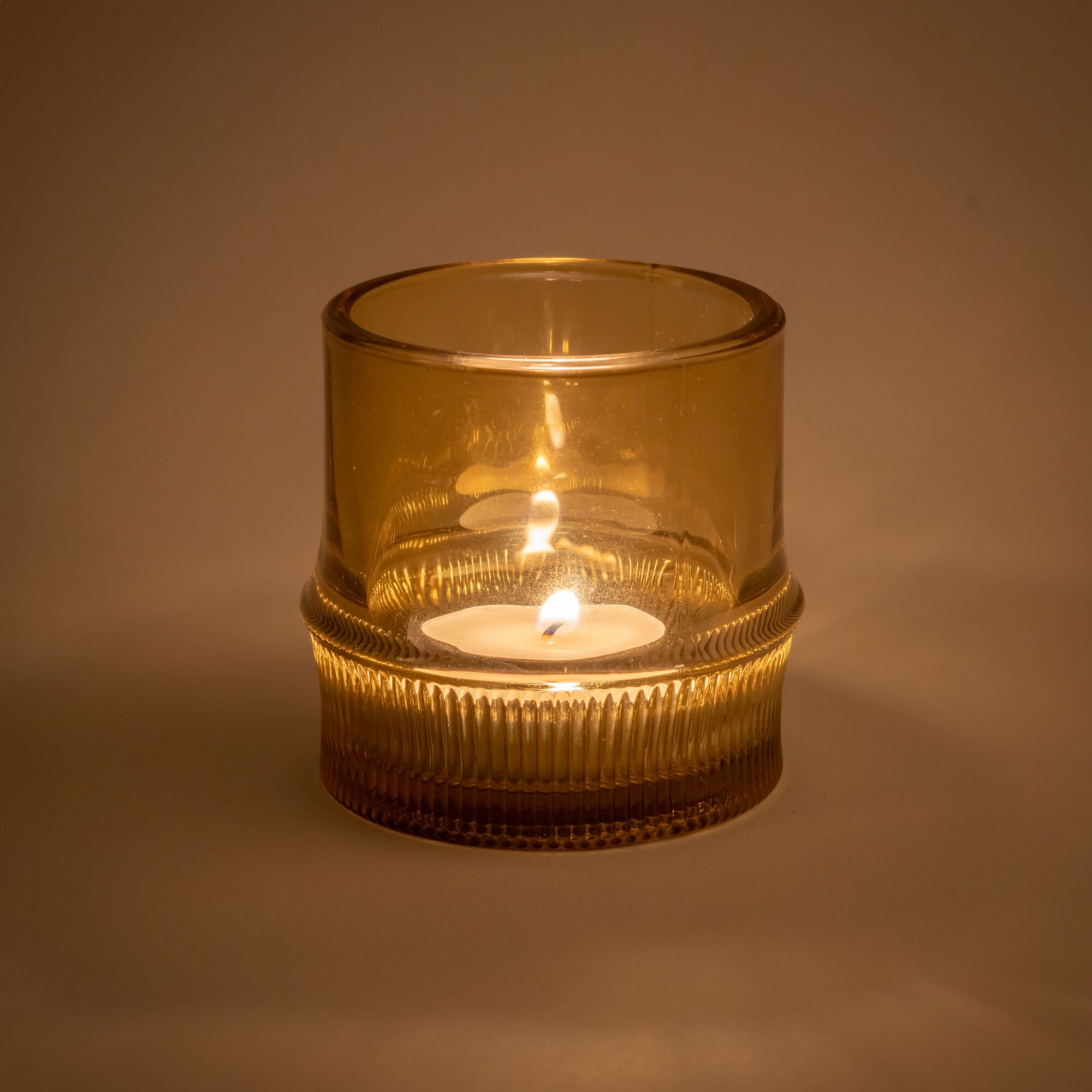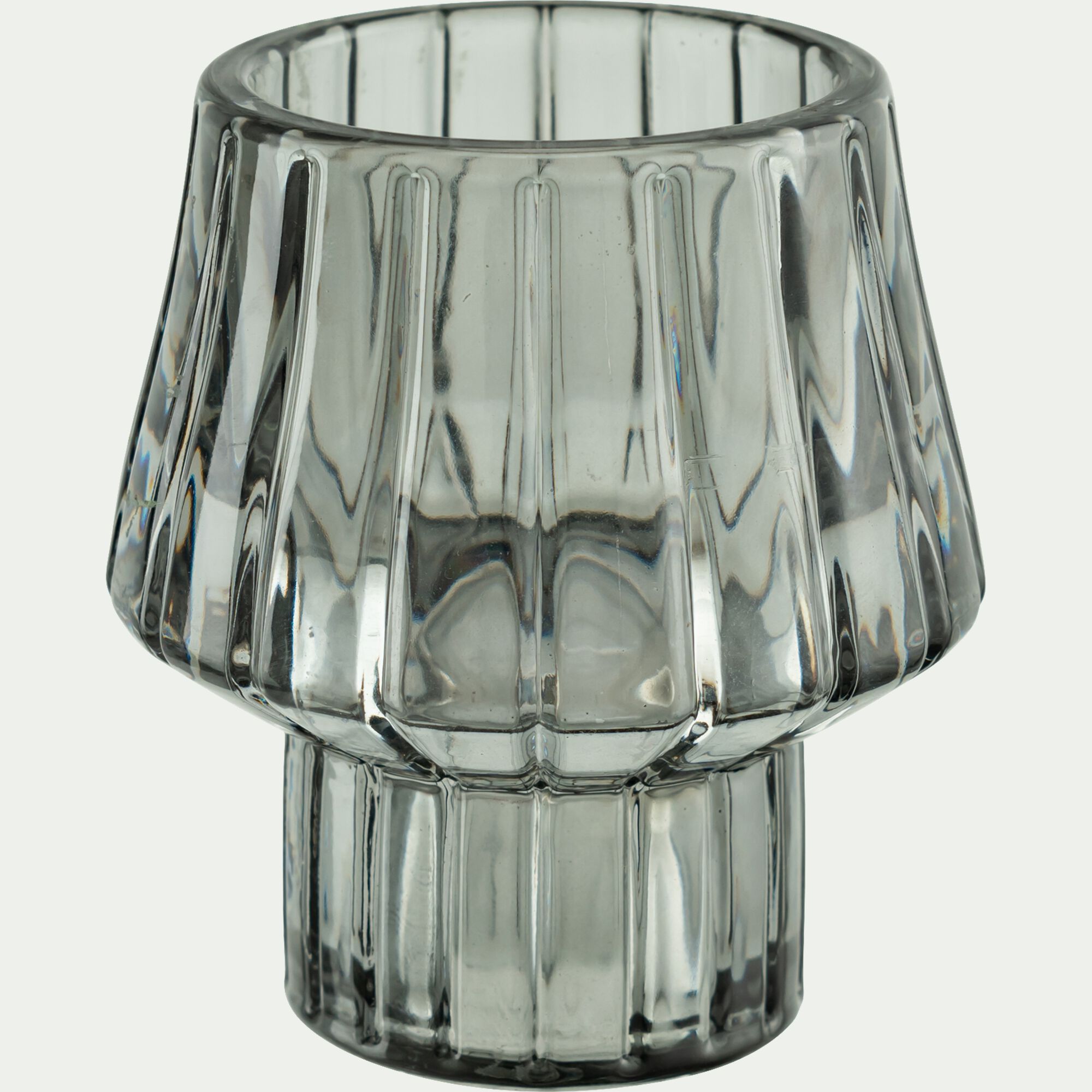 SOLIAS - Photophore strié en verre D9cm - transparent