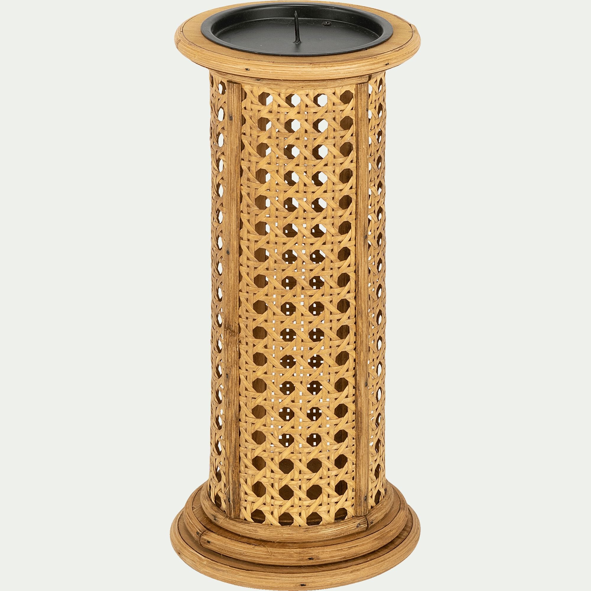 SANDRO - Photophore tressé en bois - naturel D11xH27cm