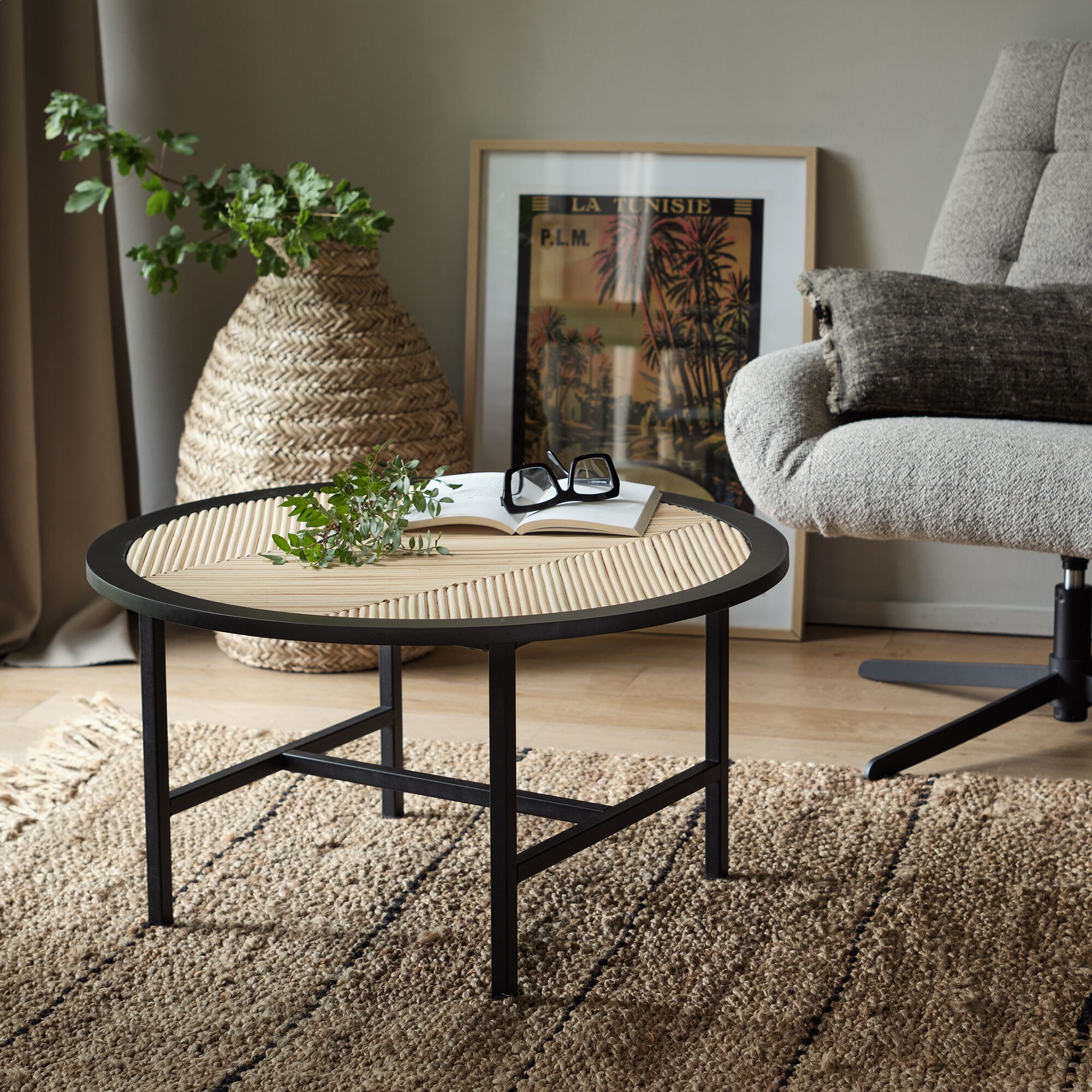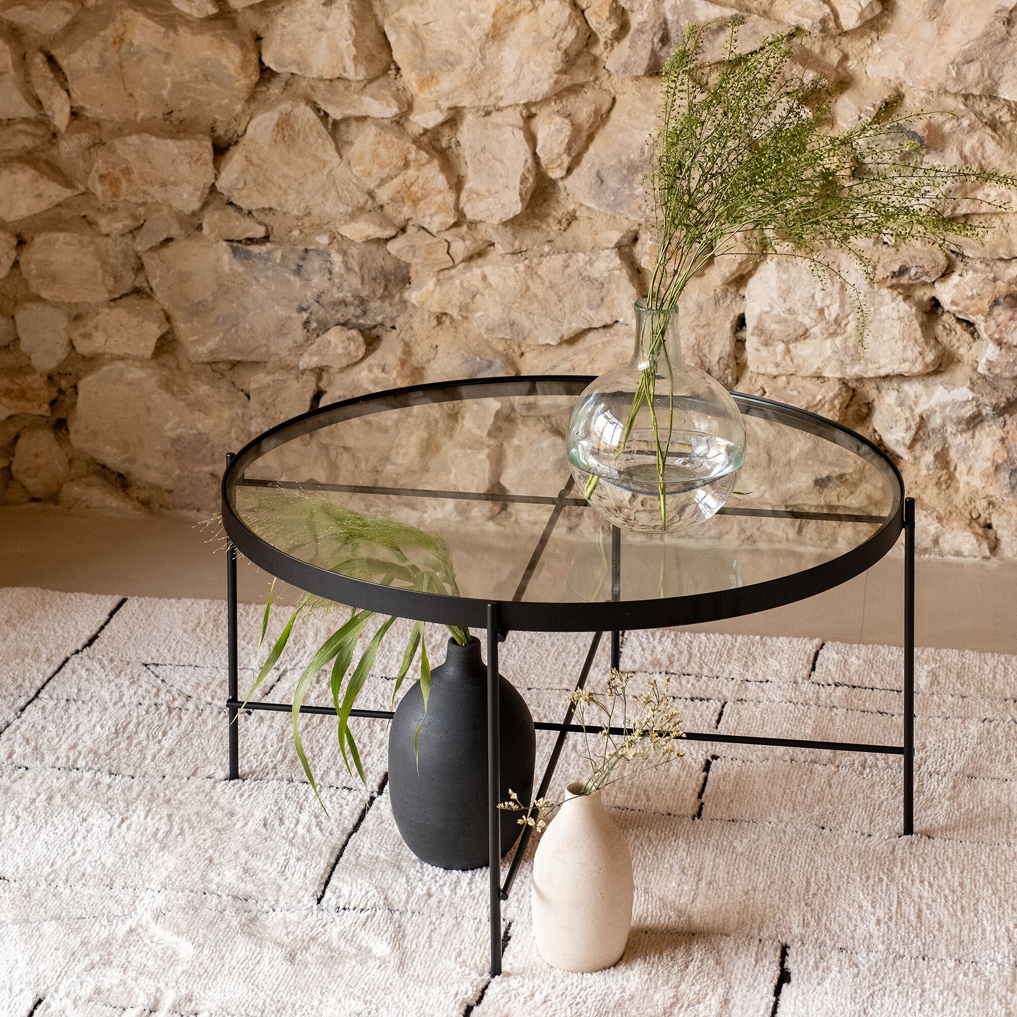 LUNELLE - Table basse en métal et verre D80xH38cm - marron