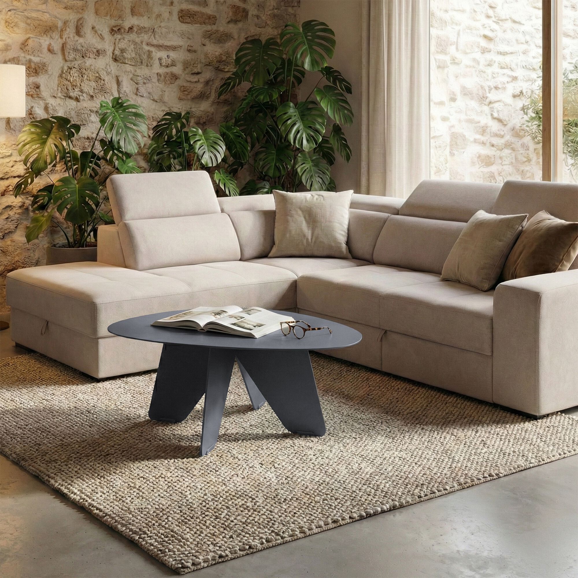 PERTUIS - Table basse ovale en acier l75xH35cm - beige