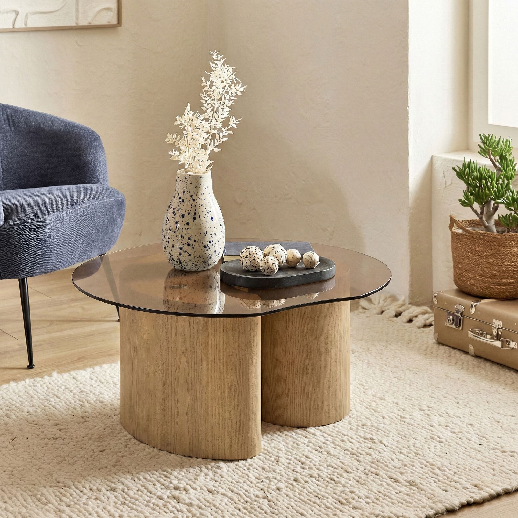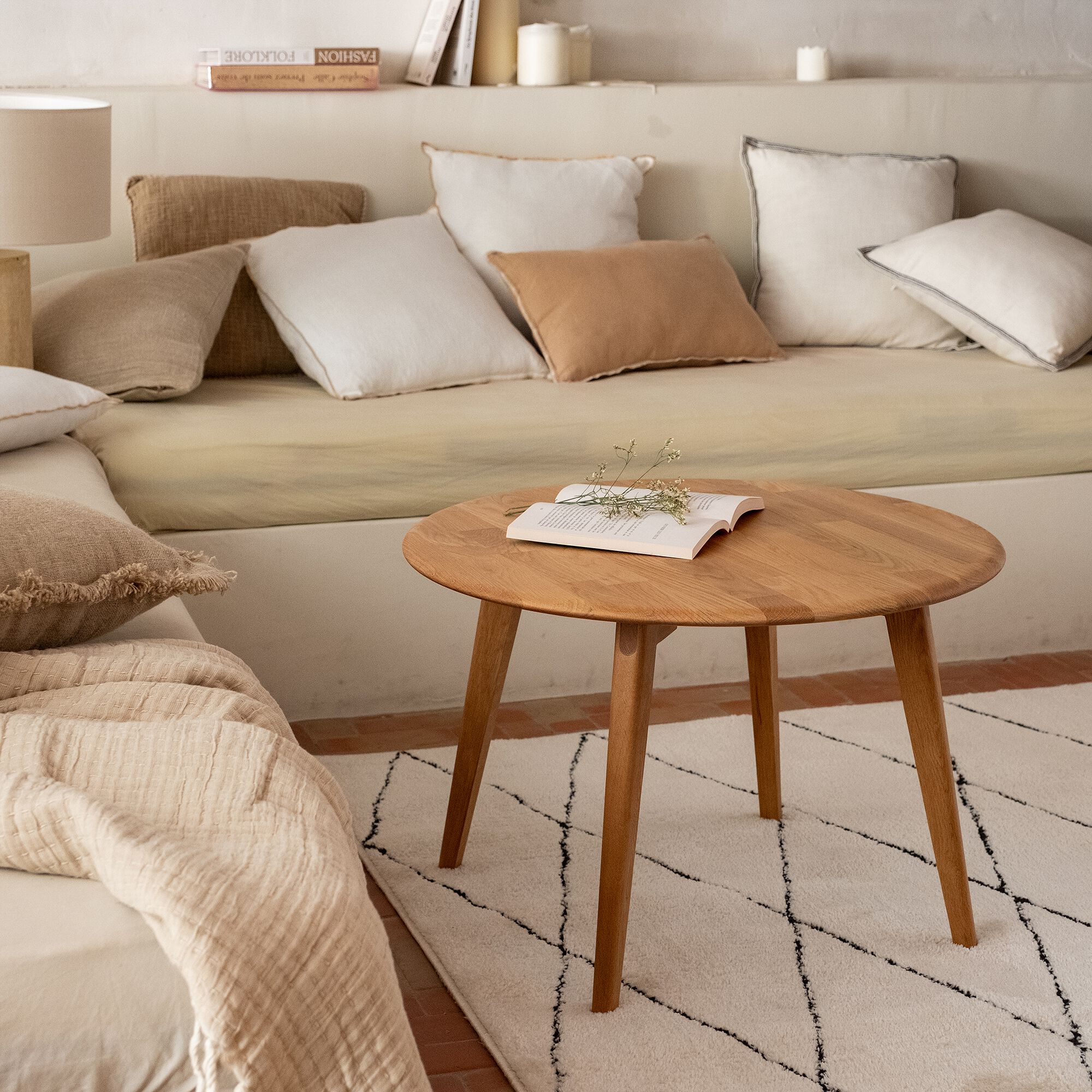 LAGOS - Table basse ronde en chêne massif - bois clair
