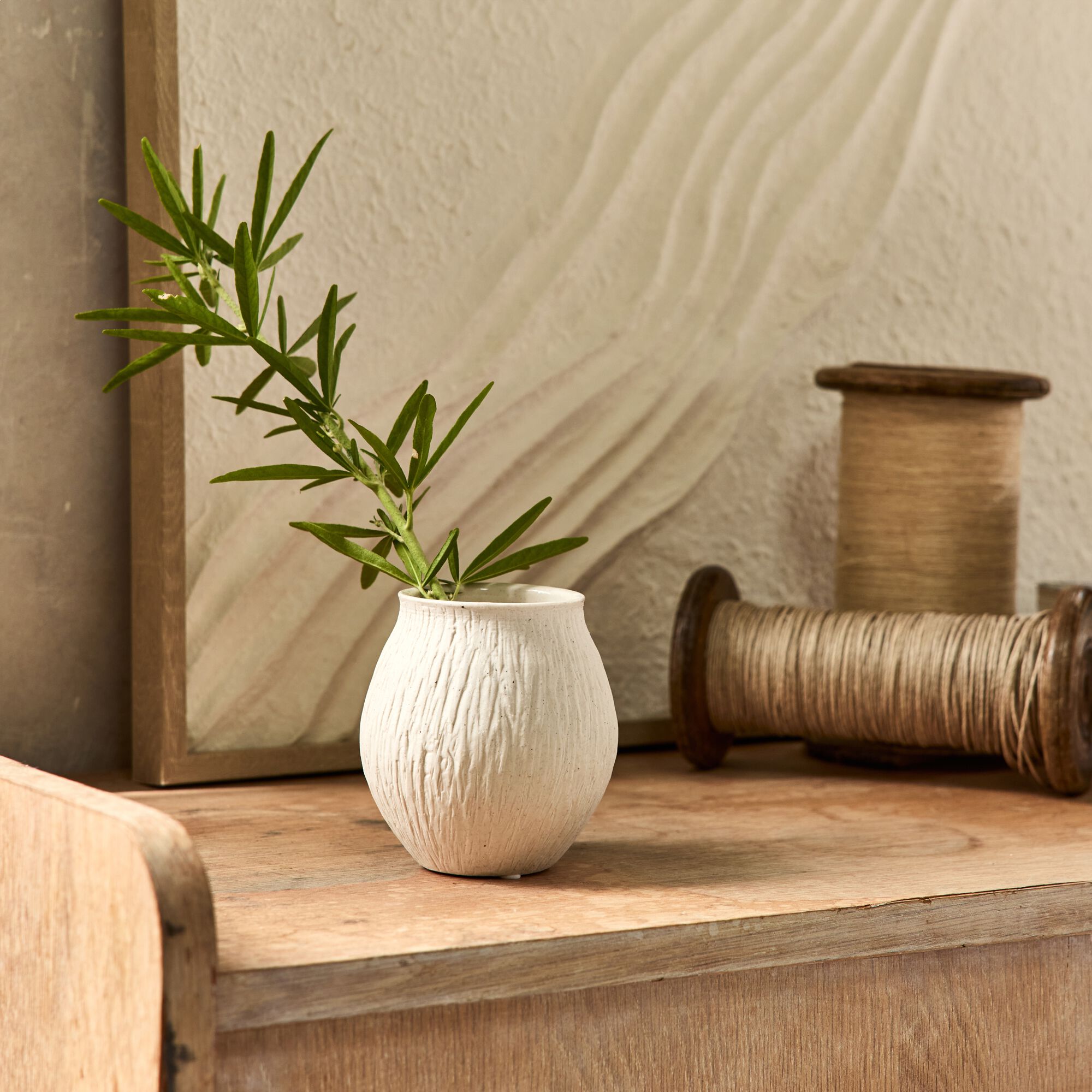 STUDEN - Vase boule en grès strié H10,5cm - blanc