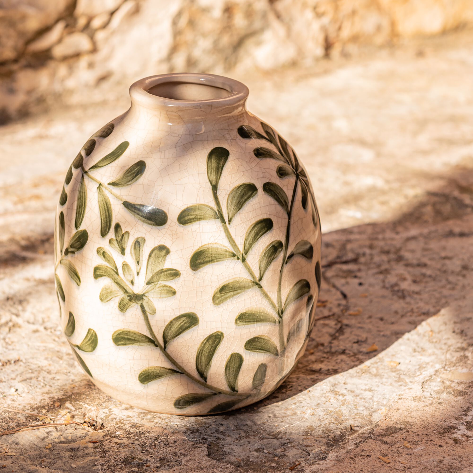 BAGARD - Vase boule en grès motif végétal H12,6cm - beige