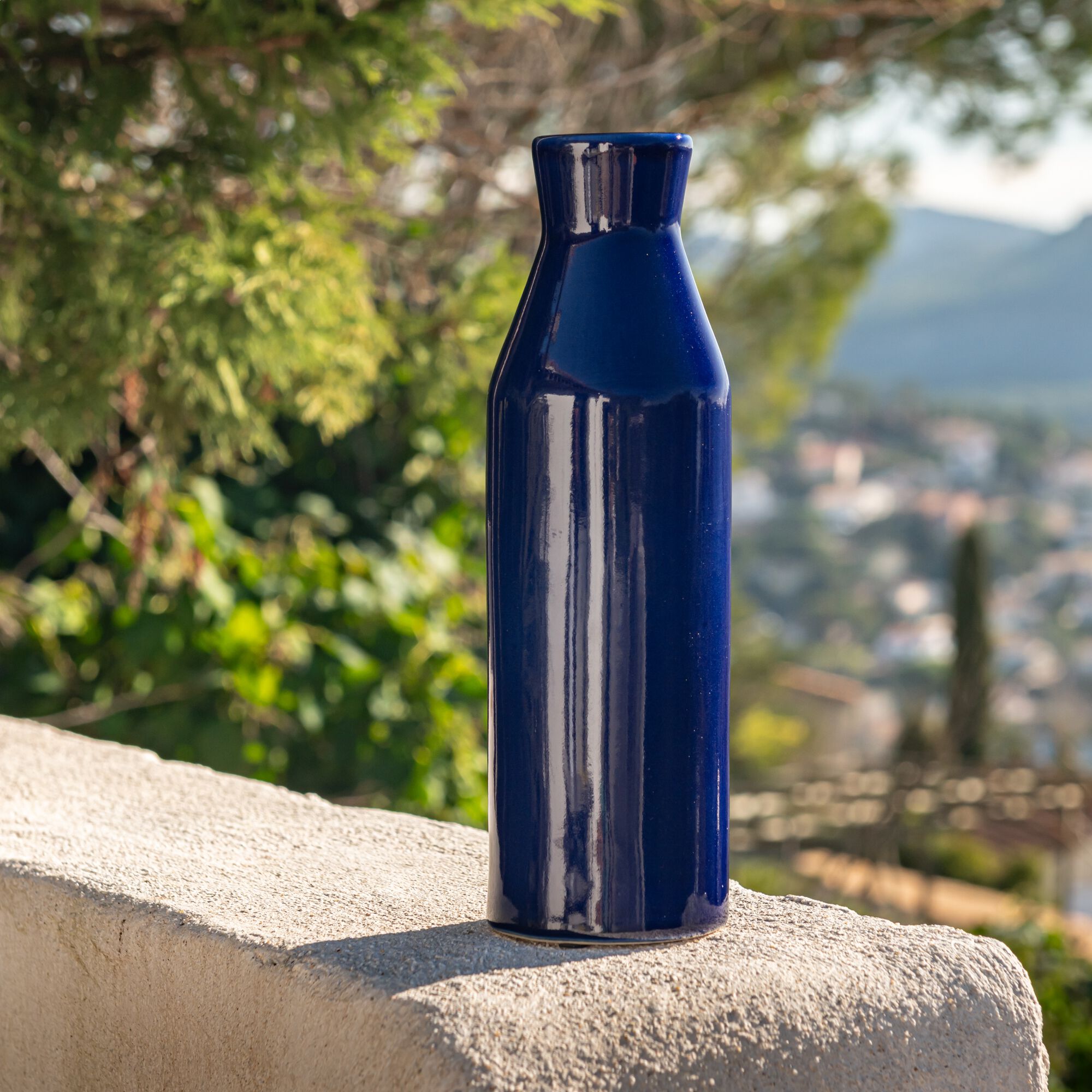 BARSAC - Vase bouteille en faïence H28cm - bleu
